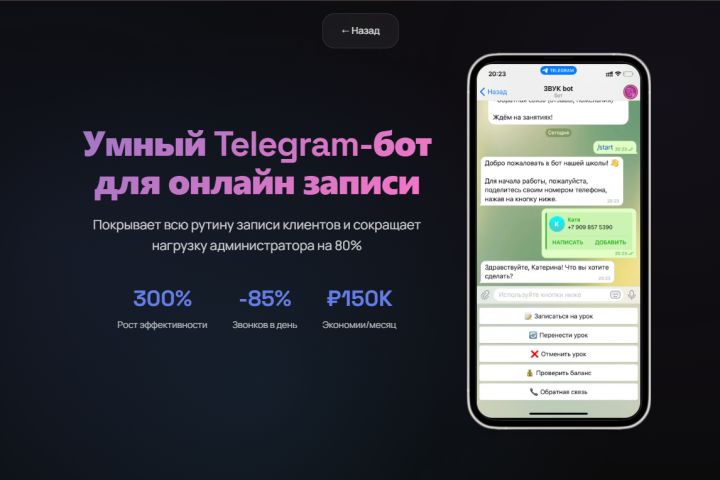 Клиент — директор образовательного центра — столкнулся с критической проблемой: 80% рабочего времени менеджеров уходило на рутинные задачи записи учеников. Ежедневно поступало множество звонков с однотипными запросами: записаться на урок, перенести занятие, узнать баланс. Это создавало колоссальную нагрузку на персонал и мешало развитию бизнеса.