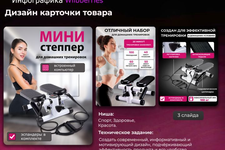 Создать современный, информативный и мотивирующий дизайн, подчеркивающий эффективность продукта и его удобство. ( 3 слайда)