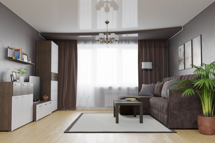Нужно было создать интерьер и различные типы натяжных потолков. Часть предметов интерьера была создана вручную, часть была взята из готовых библиотек.