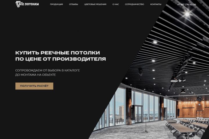 Компании "Все потолки" требовался современный сайт для презентации продукции реечных потолков. Задача состояла в создании информативного ресурса, который поможет клиентам легко ориентироваться в каталоге товаров, знакомиться с услугами и оставлять заявки напрямую через сайт.
