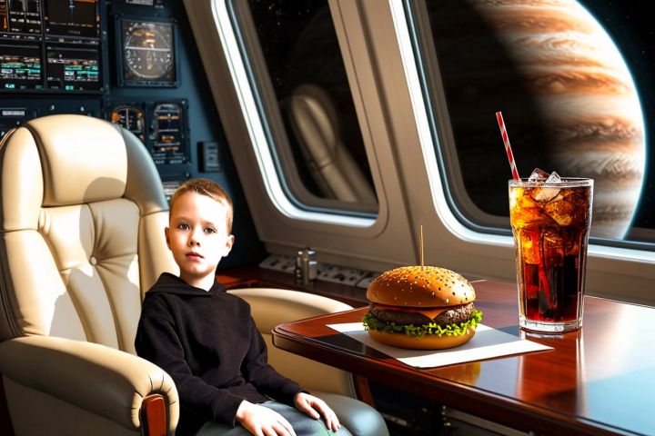С помощью передовых нейросетевых моделей был сгенерирован фотореалистичный интерьер космического корабля с видом на планету Юпитер через иллюминатор. ✨ Особое внимание уделялось детализации: бликам света на конструкциях, приглушенному освещению кабины, что создавало эффект полного погружения в космическое пространство.