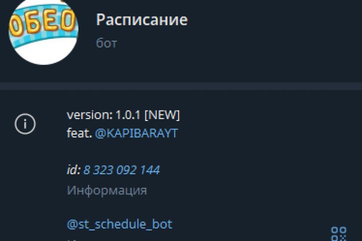 В рамках реализации проекта по созданию автоматизированных систем поддержки учебного процесса был разработан Telegram-бот, выполняющий функции информационного ассистента. Данный бот предоставляет студентам актуальную информацию о расписании занятий, включая данные о местоположении аудиторий, времени начала и окончания учебных пар. Таким образом, он существенно упрощает навигацию по учебным корпусам и повышает эффективность планирования учебного дня.