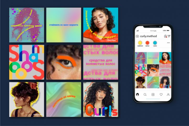 учебная работа. Задача: сделать трендовый визуал на 9 постов из трех случайных фото.
