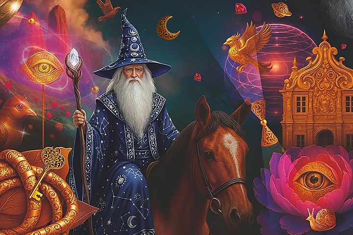 Разработка иллюстрации выполнена по собственной методике: при помощи ИИ генераций исходного материала, работе с объектами, компоузинга, цветокоррекции, фильтров и финальной обработки.