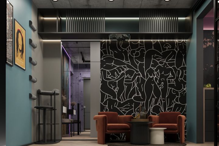 Сумасшедший дизайн-проект для крутой заказчицы. Квартира была после пожара, поэтому основной запрос - отсутствие натяжного потолка. Заказчица - невероятная девушка, ездит на машине цвета фуксия, носит разноцветные косы (розово-бирюзовые), катается на мотоцикле и сноуборде и обожает Боба Марли. Весь её взрывной характер, а также куча безумных идей типа метровой кровати с хранением нашли отражение в нашем проекте:)