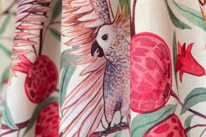 принт для текстиля с гранатом и какаду