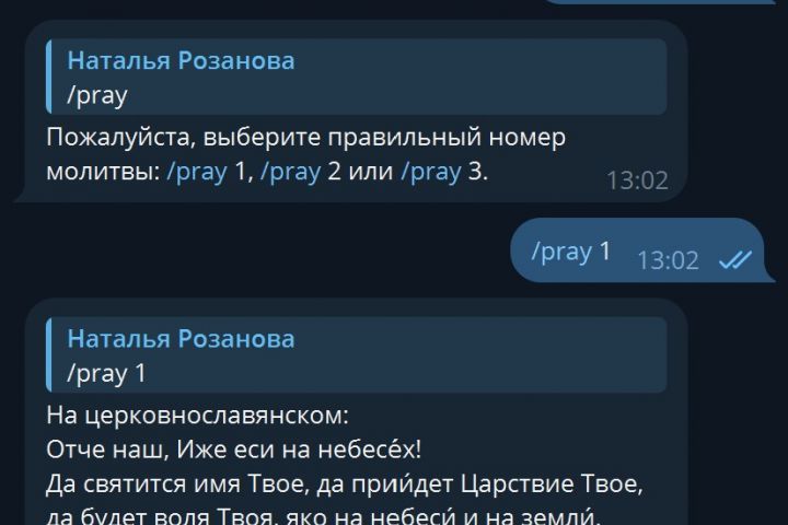 2. Реализована возможность выбора и отправки текстов молитв по запросу пользователя.