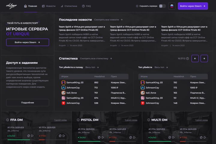 Адаптивная верстка сайта для игровых серверов по Counter-Strike по макетам figma (дизайн предоставлен заказчиком)