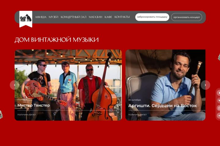Разработать современный одностраничный сайт для музыкального venue с функцией полного анонсирования мероприятий. Ключевая задача — создать интуитивную систему отображения событий в календарном формате на главной странице с возможностью перехода на детальную информацию о каждом мероприятии.