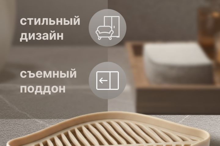 Разработать дизайн инфографики для карточки товара "Мыльница для ванной", который выделит товар на фоне конкурентов и повысит продажи.