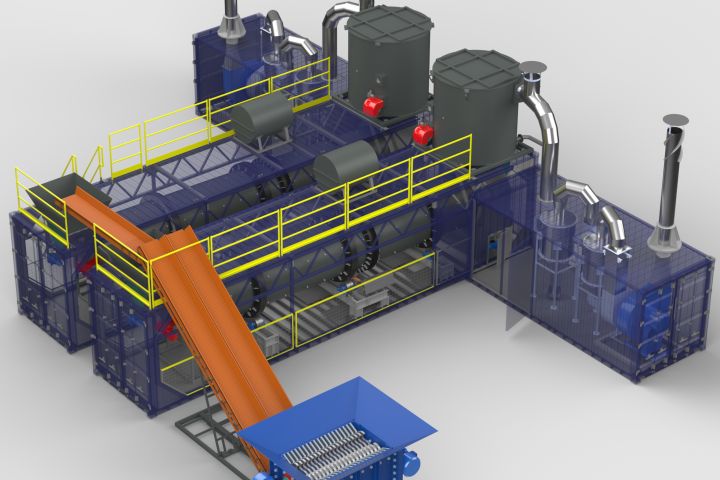 Задача: спроектировать комплекс по утилизации сыпучих отходов. По техзаданию заказчика разработана концепт-модель.