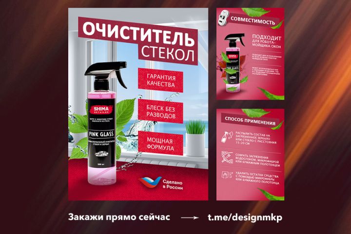 Разработал дизайн карточки товара для продажи очистителя стекол для маркетплейсов.
