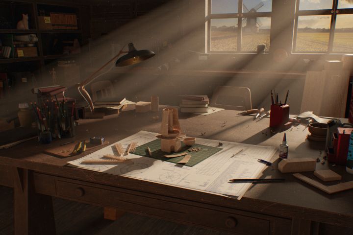 Построение, 3д-моделирование, текстурирование и рендеринг 3д-сцены для экрана загрузки в игре с пост-обработкой.