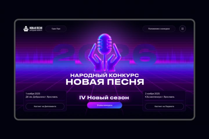 Дизайн сайта "Новая песня" Программы для разработки: Figma, Adobe Photoshop. Выполнялась разработка дизайна. Многостраничный сайт.