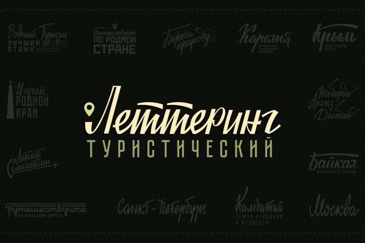 В результате получилось тринадцать леттеринг надписей в советском стиле на туристическую тему, которые можно использовать на сувенирной продукции, мерче, оформлении общественных пространств.