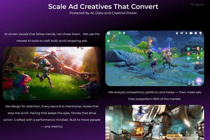 Ключевые особенности: – Чёткая структура: Hero, Services, Work, Approach, Contact – Короткие тексты на английском, заточенные под конверсию – Видео-превью креативов (автоплей, без звука) – Авторская композиция блоков с визуальным ритмом – Адаптивная сетка и кастомная типографика – Минималистичный интерфейс без визуального шума – Быстрая загрузка и чистая верстка без лишних плагинов