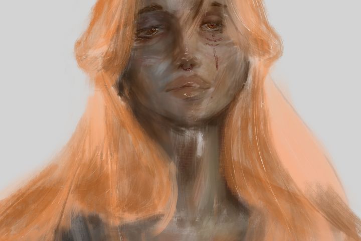 Портрет из головы, больше мазков, цепляющий взгляд, рыжий вцвет волос