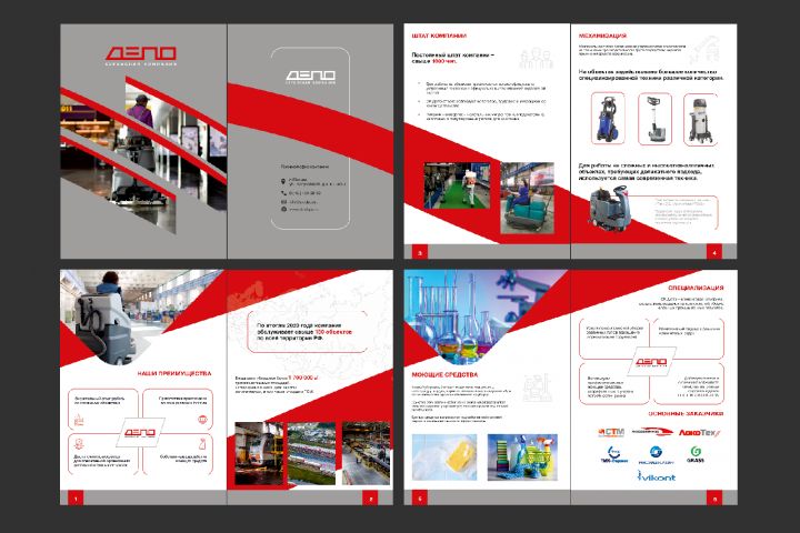 Буклет для компании, предоставляющей услуги клининга для организаций. Формат А4, 8 полос. Дизайн, верстка, подготовка к печати.