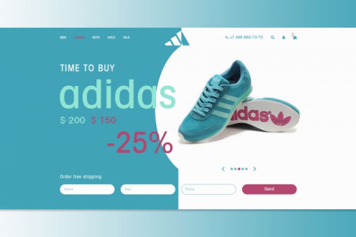 Landing Page с высокой конверсией, продажа фирменной обуви Adidas. Ярко, красочно, стильно.