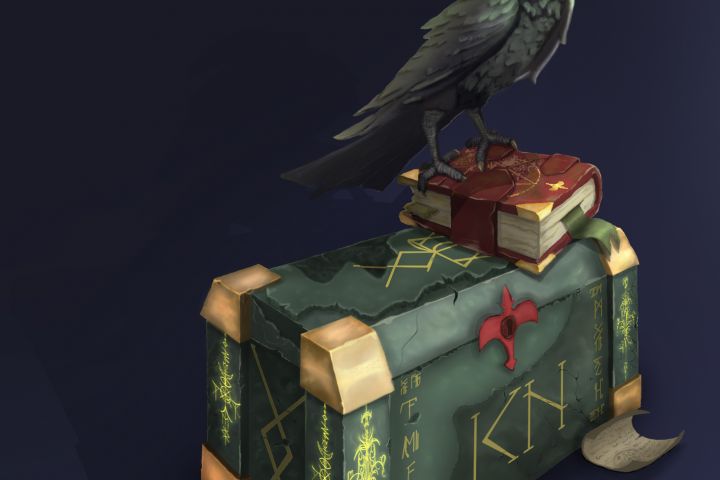 Задача: создать сундук персонажа (ведьмы) в темных тонах. На сундуке должны быть магические руны, которые светятся желтым. Персонаж-ведьма является правителем волшебной страны, поэтому на сундуке это как-то должно быть отображено. Также у ведьмы есть фамильяр - черный ворон.