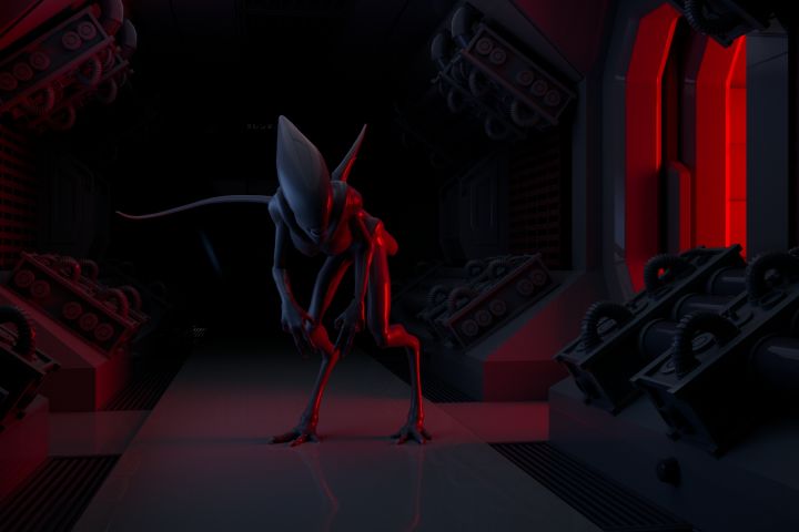 Анимация Чужой выходит из дверей станции