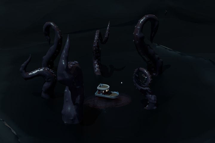 Сценка задумывалась как пробуждение морского зверя. Момент перед нападением на корабль