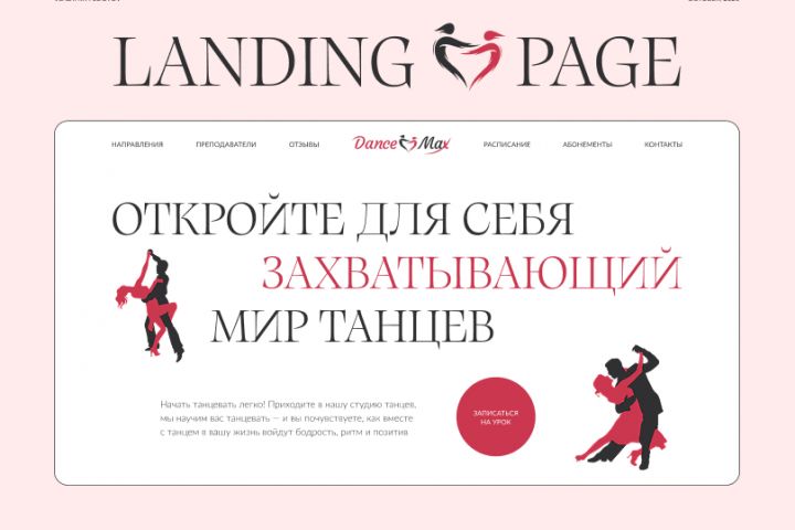Задача: Создать дизайн Landing Page, который станет конкурентным преимуществом школы, подчеркнёт её уникальную атмосферу и поможет привлечь новых учеников. Важно было сохранить фирменный стиль, вызвать эмоциональный отклик и передать страсть к танцу через визуальные решения.