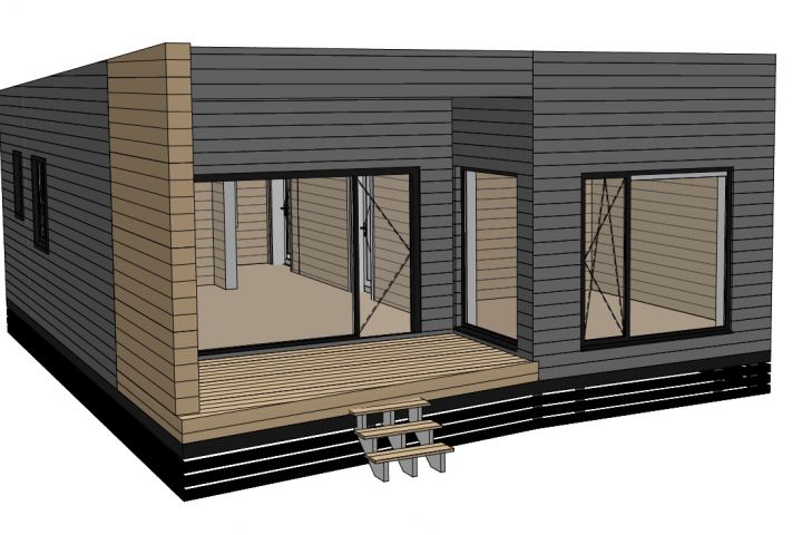 Дом одноэтажный, в стиле ,,Куб,, , для круглогодичного пользования. Есть небольшая терраса и крыльцо под