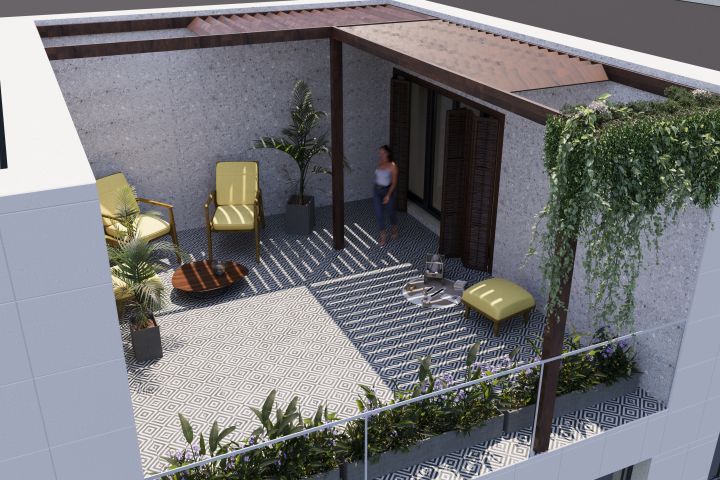 Создание 3D-визуализации для презентации Заказчику двух вариантов террасы в многоквартирном жилом доме, на последнем этаже.