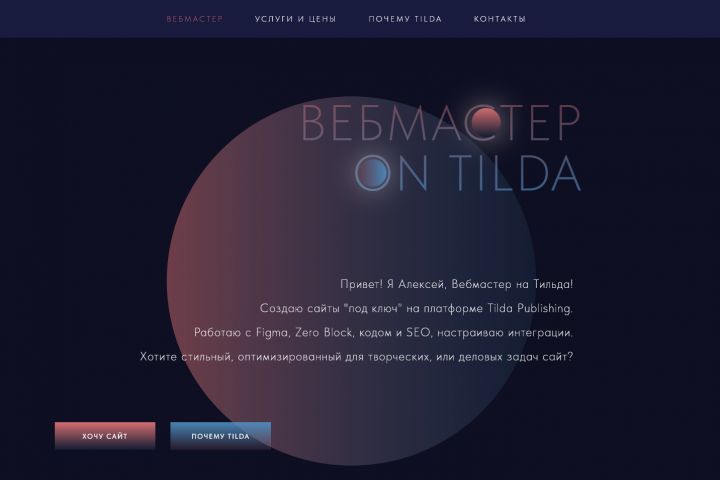 Первая реализация попытки найти оригинальный стиль для сайта частного специалиста-вебмастера на Tilda.