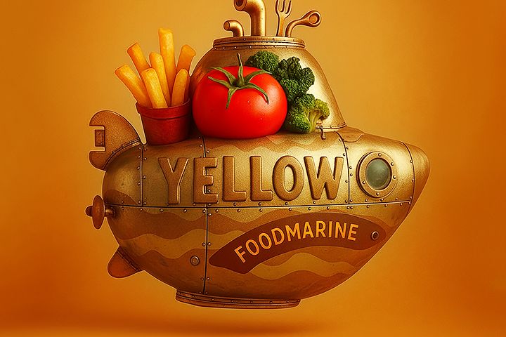 В основу легла идея «Желтой субмарины», трансформированной в «Фудмарину» — батискаф, который доставляет вкусные эмоции. Инструментарий и технологии: Для оптимизации сроков и поиска нестандартных форм была использована генеративная графика (Neural Networks).