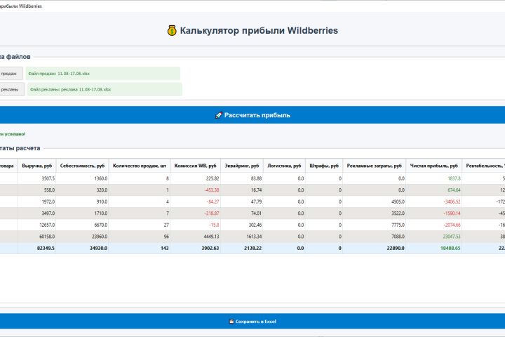 Анализ финансов в Wildberries на основании выгруженных exel-файлов.