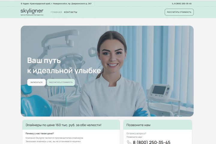 Современный веб-сайт в пастельных тонах для Skyligner, ортодонтической клиники и производителя элайнеров. Целью было создать понятное и заслуживающее доверия онлайн—пространство, где пациенты могли бы узнать о элайнерах, ценах и вариантах рассрочки непосредственно у производителя - без наценок клиники. Я занимался разработкой как интерфейса, так и серверной части, обеспечивая бесперебойную работу и мягкий дизайн в медицинском стиле.