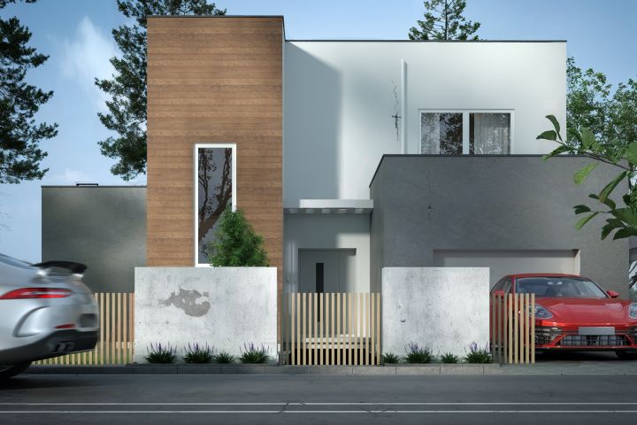 Этот современный жилой дом представляет собой гармоничное сочетание графического дизайна и продуманной архитектуры. Основными материалами выступают дерево и бетон, что позволяет создать контраст между теплотой натуральных текстур и строгостью минималистичных форм. Фасад выполнен в стиле минимализма и состоит из чётко очерченных геометрических объемов, которые придают зданию выразительность и динамику. Каждый элемент проекта продуман до мелочей, обеспечивая баланс между эстетикой и функциональностью: просторные помещения, рациональное зонирование и естественное освещение создают комфорт для жизни, а чистые линии и сдержанные формы подчеркивают современный стиль и индивидуальность дома. Этот проект воплощает идею современного жилого пространства, где дизайн и практичность идут рука об руку, создавая гармоничную и вдохновляющую среду для проживания