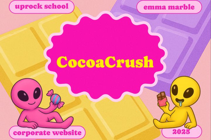 CocoaCrush — бренд шоколадных продуктов нового поколения. Главная идея — соединить эстетику футуризма и удовольствия, создав шоколад, который выглядит и ощущается как искусство. Продукция компании — белая шоколадная паста с фисташковой начинкой и конфеты в форме инопланетян.