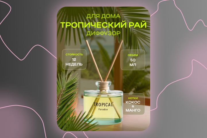 Задача заключалась в том, чтобы сгенерировать фон для товара и вписать его в слайд, а также подобрать подходящий шрифт и цвета для оформления