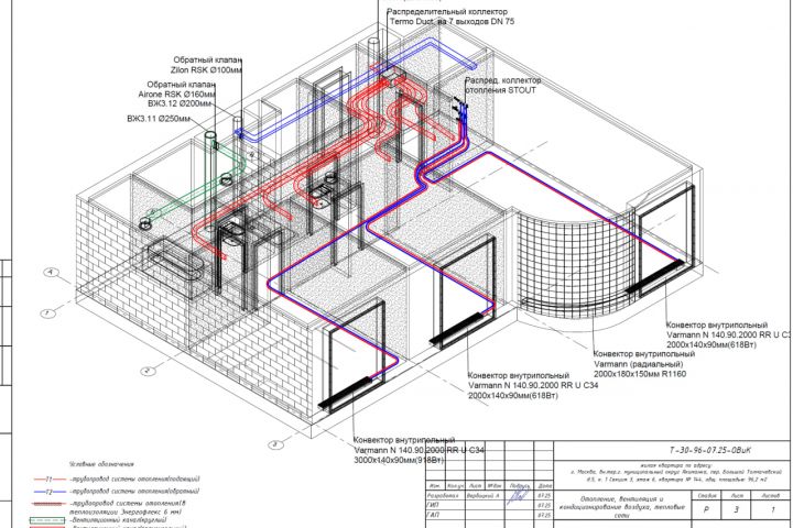 Рабочий проект внутренних инженерных систем жилой квартиры, г. Москва