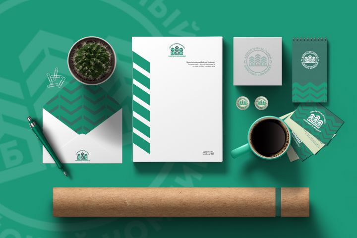 Т.к. регионально проект находится в Южной Сибири, в логотипе были добавлены отсылки в виде елей. К строительной нише указывает общий геометризм знака и ели растущие из домиков. Эти же узнаваемые элементы стали основой визуального стиля на носителях.