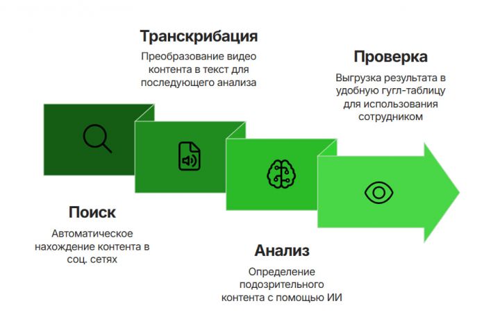 ⚙️ Видео контент автоматически преобразовывается в текст для последующего анализа.