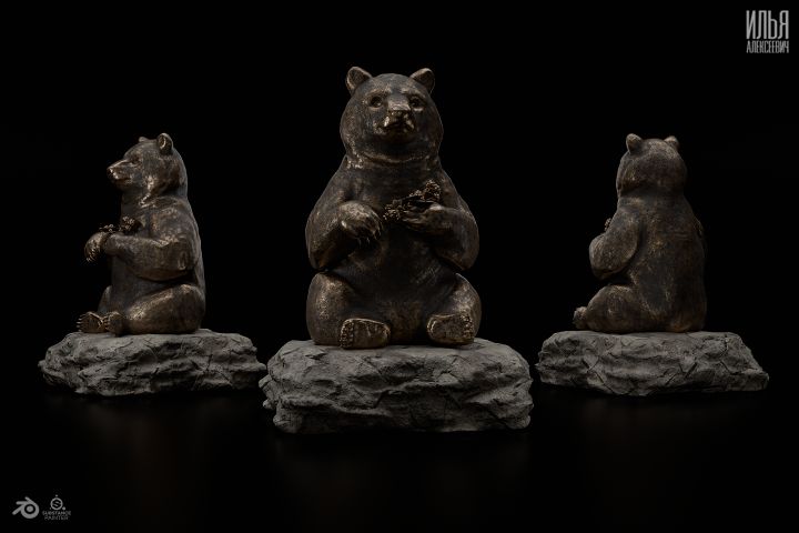 Нужно было сделать модель медведя с текстурой металла как на примерах.