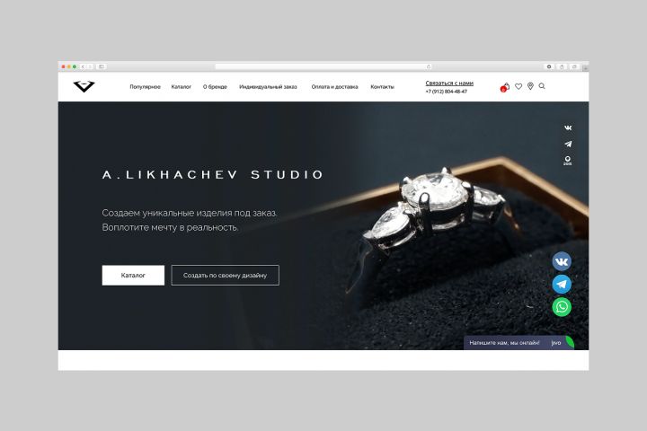 Интернет-магазин ювелирных изделий, разработанный под ключ на Tilda. Основная задача создать современный сайт с большим ассортиментом товаров, удобной понятной навигацией и интегрированным видео контентом, при этом не перегружая сайт. Проект включал разработку структуры каталога и всех внутренних страниц сайта, дизайн всех страниц, адаптивную верстку, обработку и оптимизацию видео для сайта