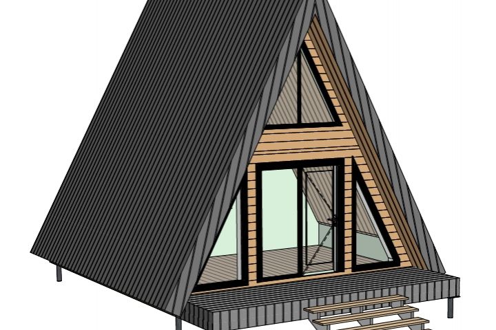 Дом в стиле А-Фрейм, для круглогодичного использования. Имеет террасу под общей с домом крышей.