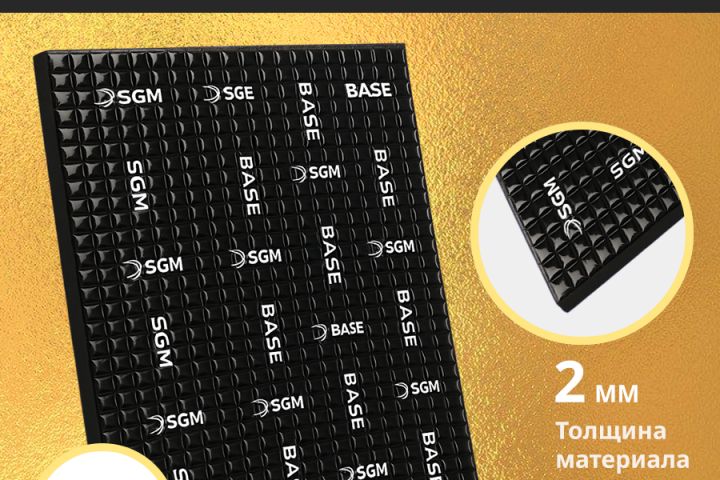 Разработать дизайн карточки для товара шумоизоляция. Использовать золотистый фон.