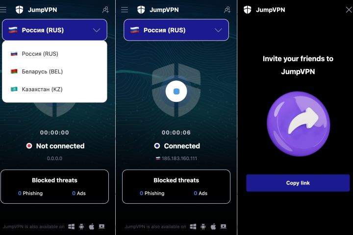 Для конечного пользователя: Интерфейс для выбора страны подключения из доступного списка.
