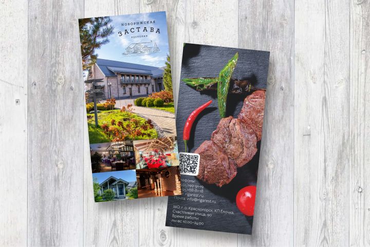 Дизайн лифлета А4 (2 фальца) для подмосковного ресторанного комплекса "Новорижская Застава".