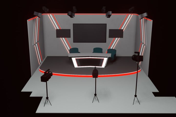 Была задача сделать макет студии с расстановкой мебели и освещения.