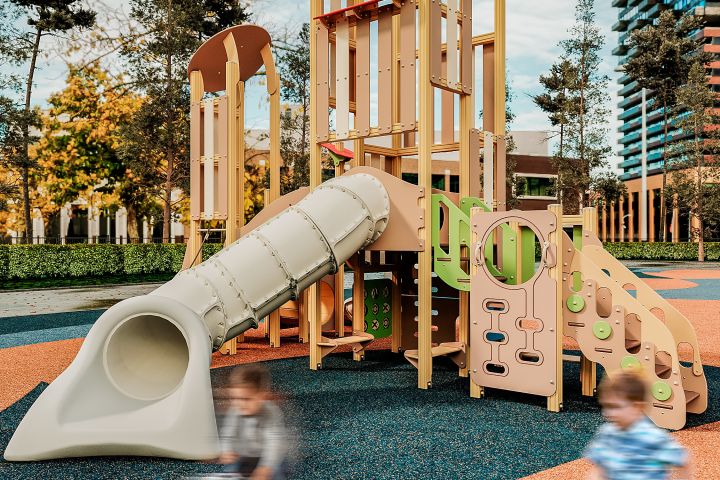 В этой 3D визуализации представлена яркая и безопасная детская площадка, созданная с учетом интересов и комфорта малышей. Детали, насыщенные цветами и реалистичной текстурой, создают атмосферу радости и игры, помогая представить будущий дизайн пространства для детей.