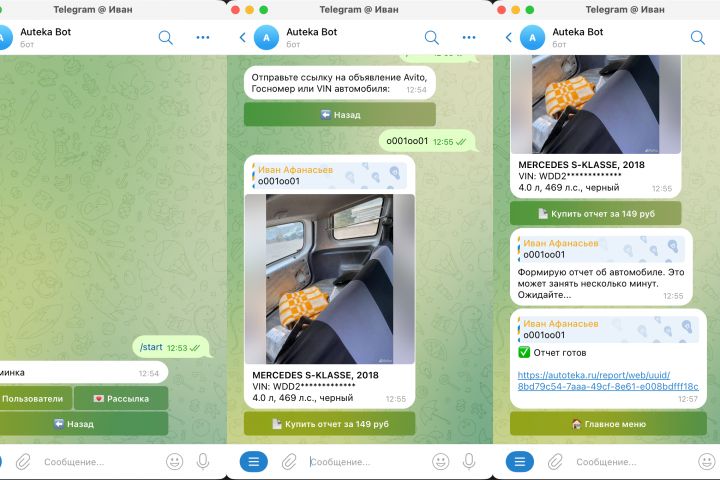 Telegram-бот, предоставляющий пользователям возможность покупать официальные отчеты Avito (Autoteka) по цене в 2 раза ниже, чем при покупке напрямую на Avito, без необходимости приобретения дорогостоящих пакетов подписки. Весь функционал доступен в удобном интерфейсе чат-бота.