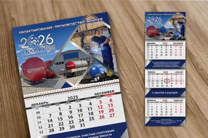 Настенный календарь, который отражает деятельность предприятия и продукцию.