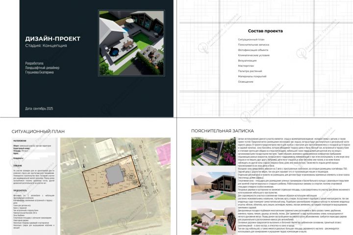 В результате собственник участка получил Альбом - Концепция. Сейчас ведется работа по подготовке рабочего проекта для реализации.
